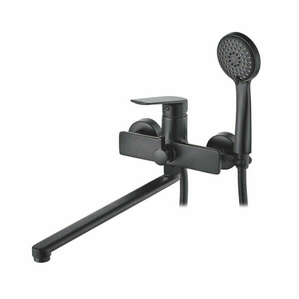 Смеситель ванна прямой нос 35 см (35) дивертор в корпусе Латунь Черный Accoona А71125F