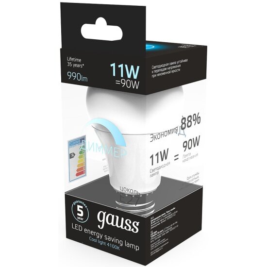 Купить Gauss Лампа A60 11W 990lm 4100К E27 диммируемая LED 102502211-D