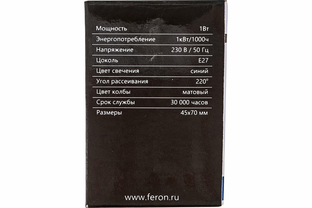 Светодиодная лампа FERON 1W 230V E27 синий, LB-372 25913