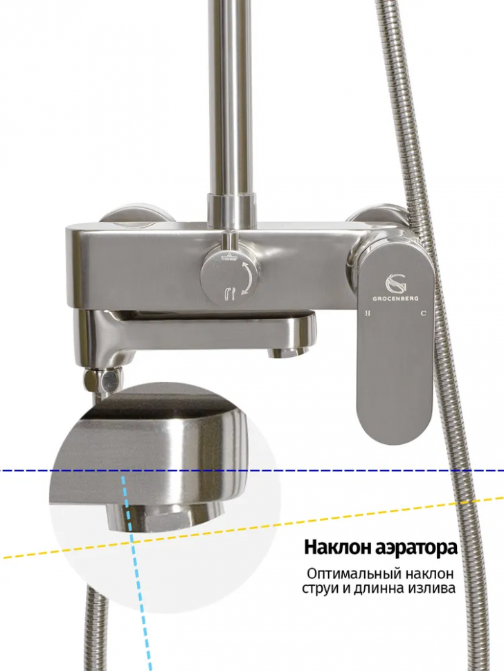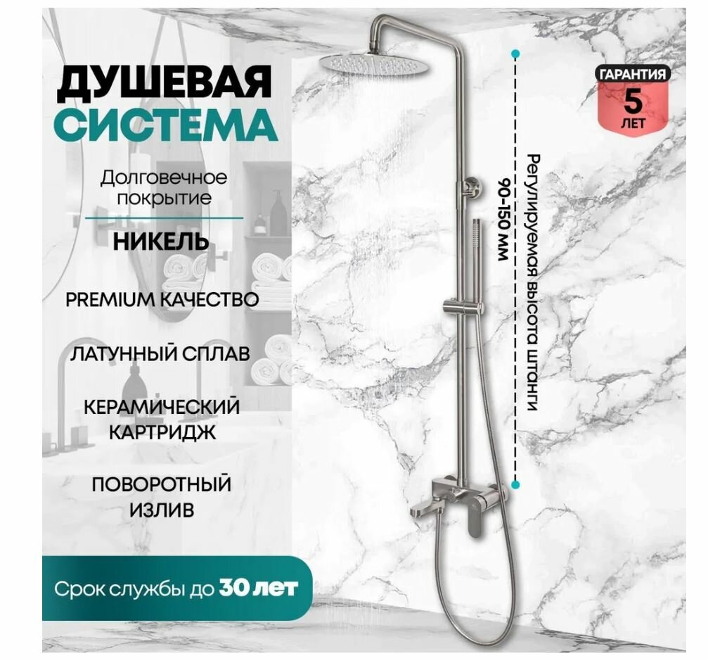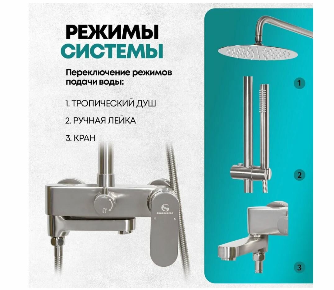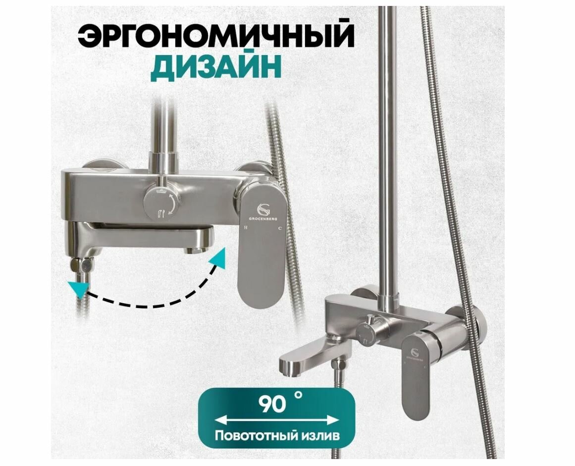 Душевая системасо смесителем и тропический душем Grocenberg GB7011NK Никель интересное: