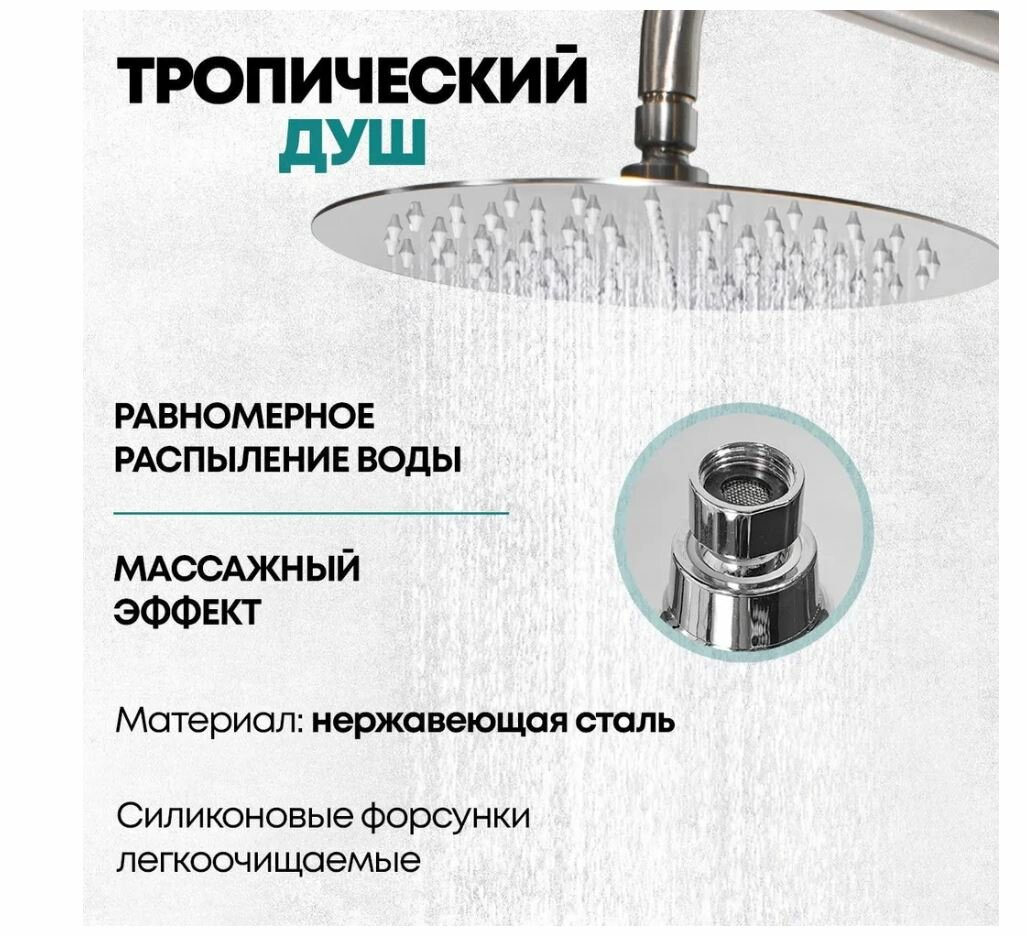 | Режимы | тропический дождь / смешанная струя / мягкая струя / массажная струя |
