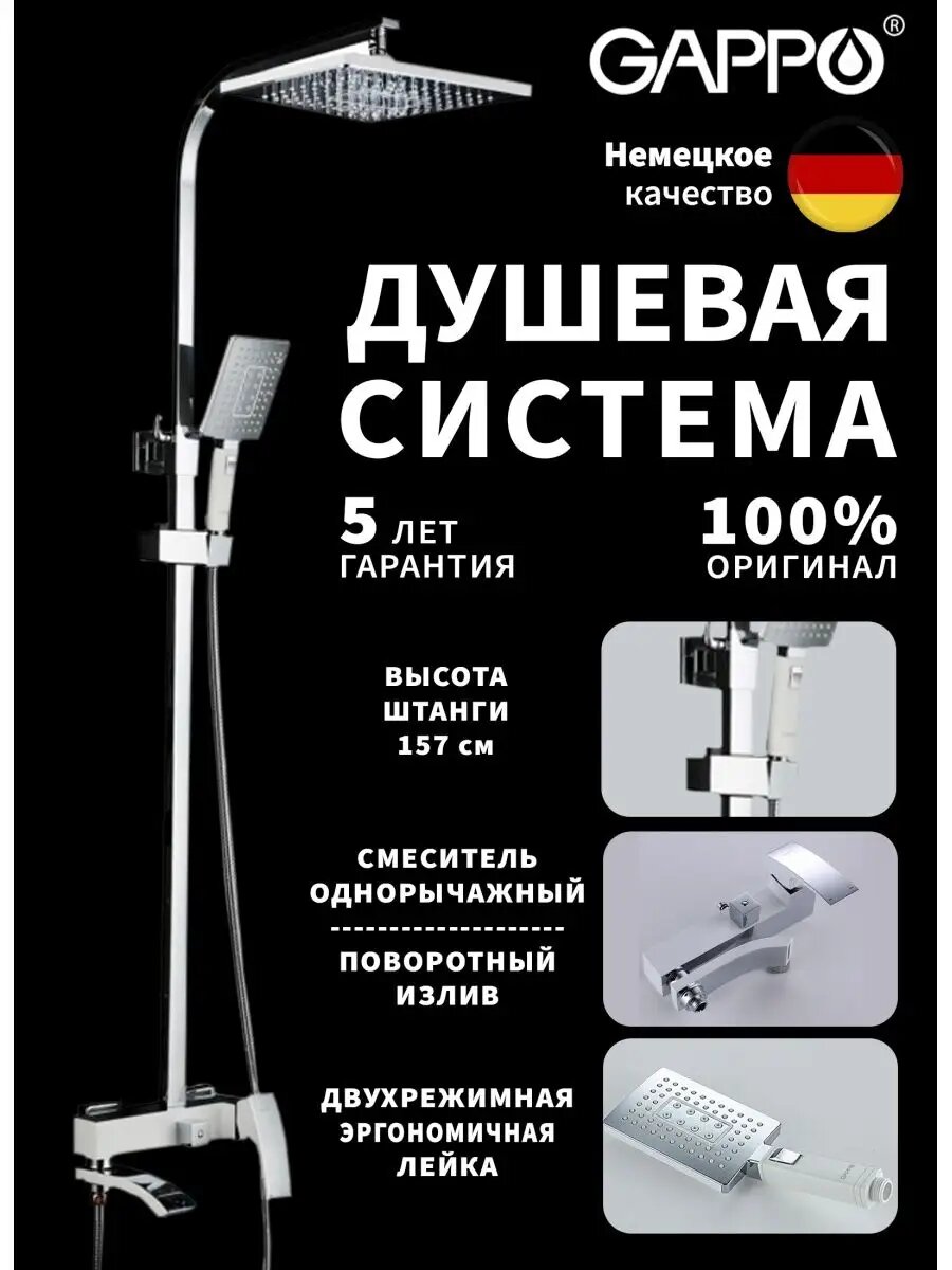 СохранитьДушевая система 35к G2407-8 GAPPO лейка "Тропический душ" белый-хром интересное: