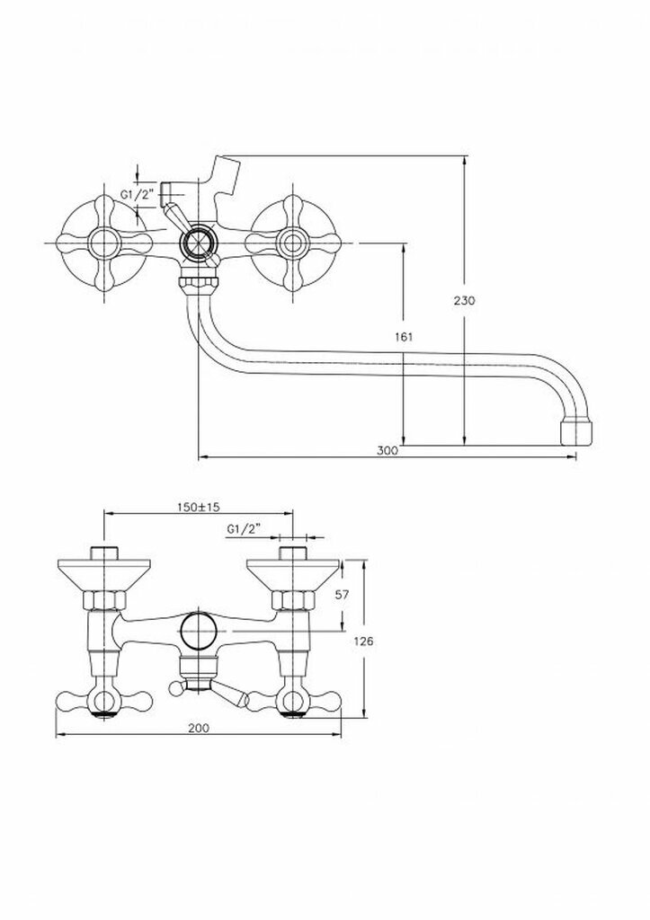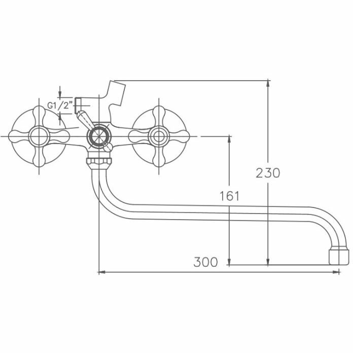 Haiba Смеситель для ванны (Lt) трубчатый поворот.излив-S 300мм,двухвент, шаровый.перек, хром, HB2208