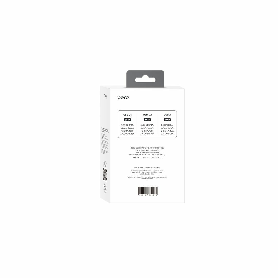PERO Сетевое зарядное устройство TC06 GaN, 1xUSB-A QC + 2xPD, 65W, LED-индикатор white (Белый)
