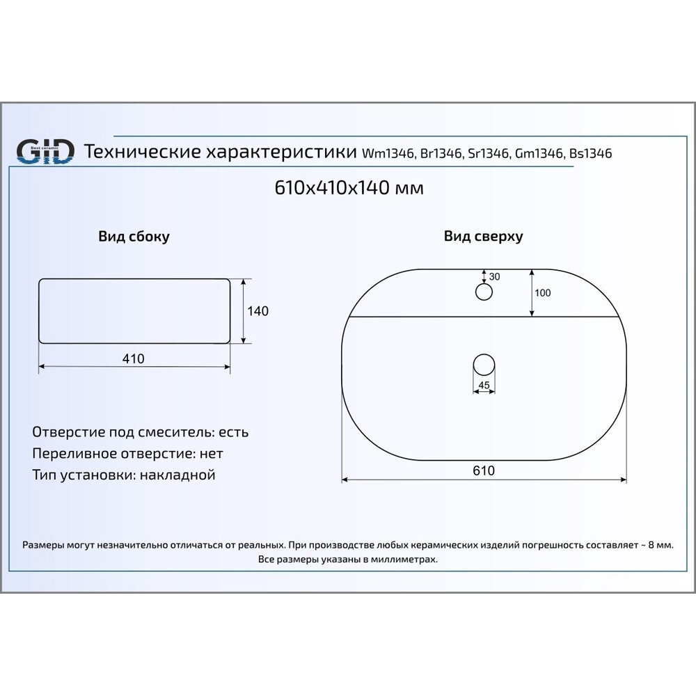 GID Раковина накладная Gid Gm1346