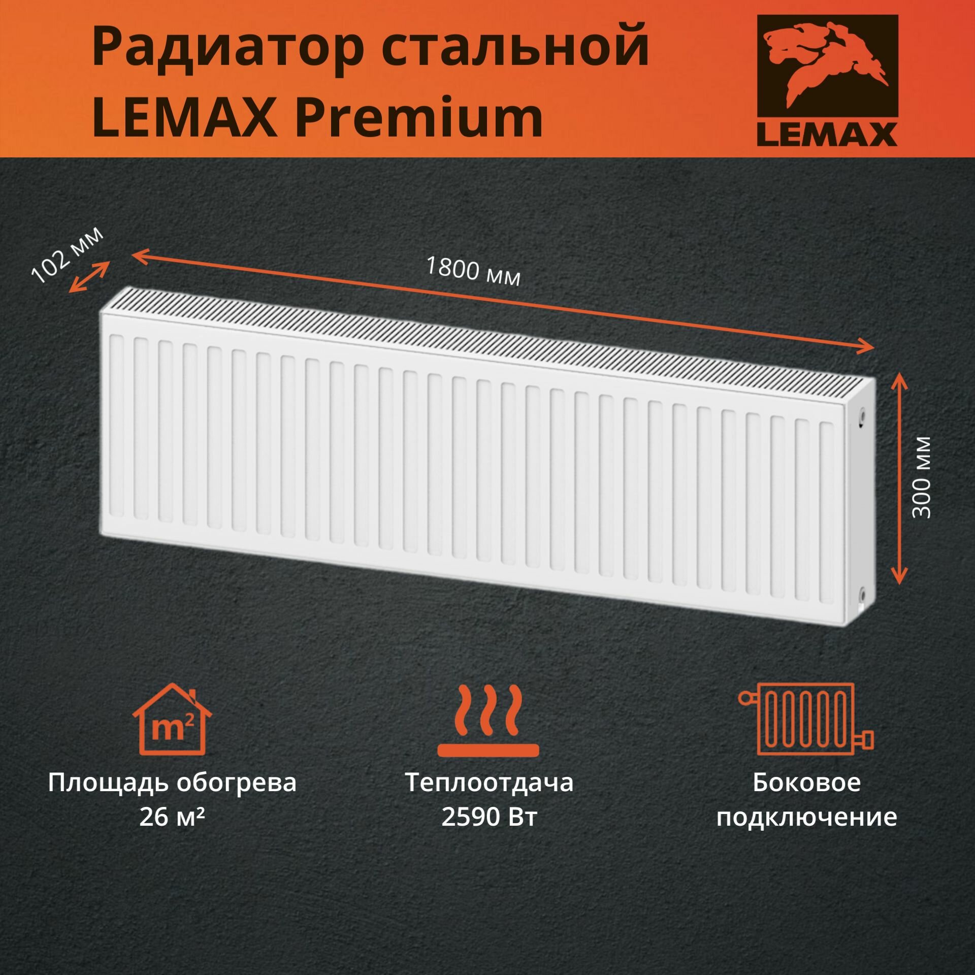 Купить Радиатор стальной Lemax Premium C22-300-1800 панельный с боковым подключением