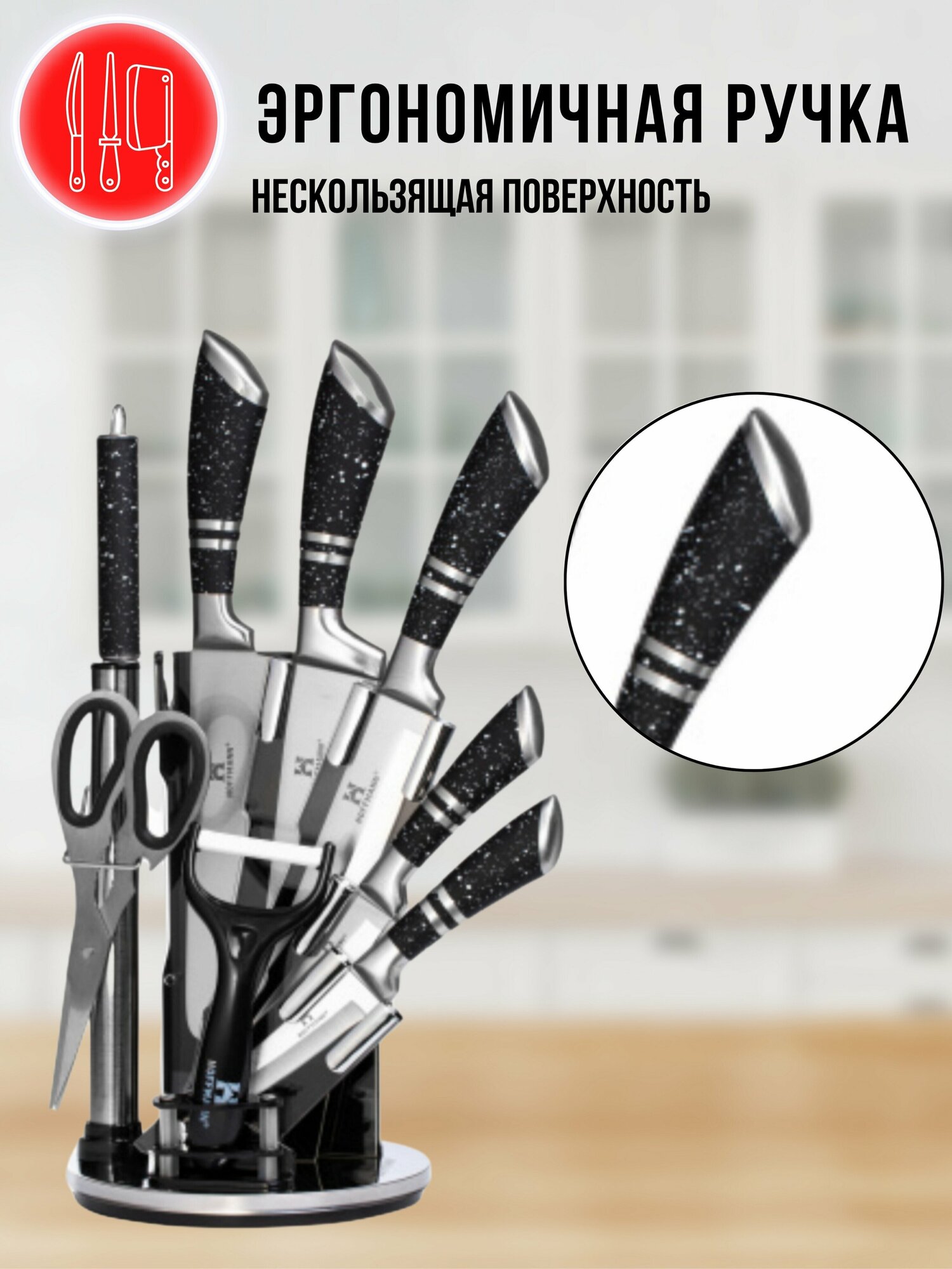 количество ножей оптимальное подставка удобная с поворотом на 360 |
