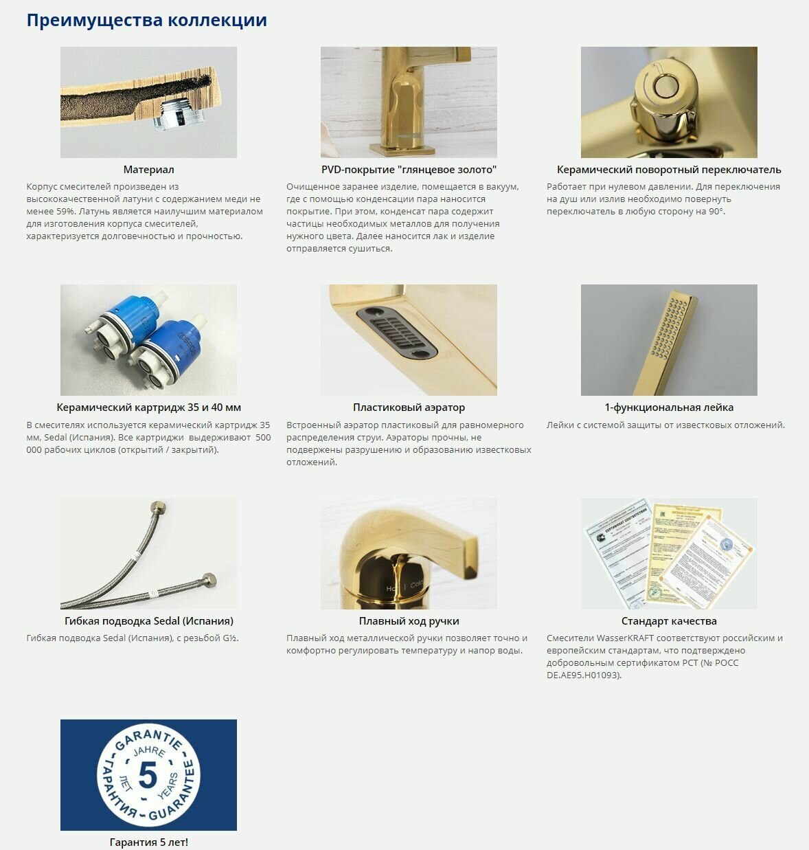 | Дополнительная информация | керамический картридж 35 мм, Sedal (Испания); верхняя душевая насадка: диаметр 248 мм, 126 форсунок |