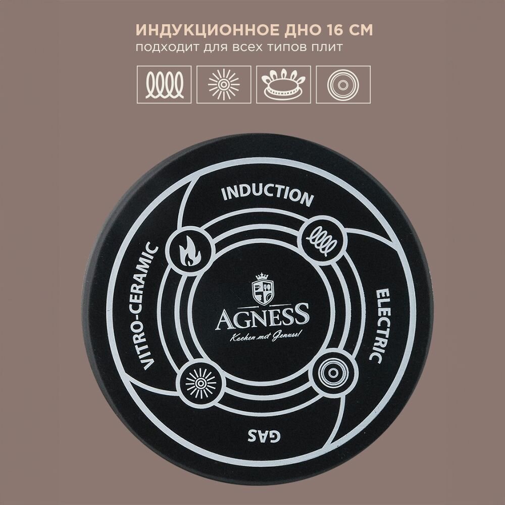 Кастрюля эмалированная Agness 2,1 литра "Яблоневый Сад " для всех видов плит, диаметр 16 см