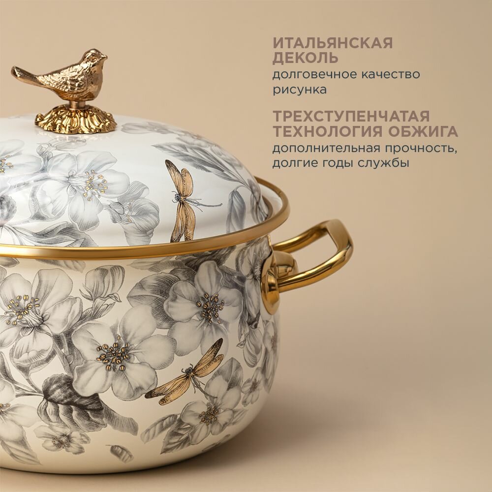 Кастрюля эмалированная с крышкой Яблоневый сад Объем: 2800 мл