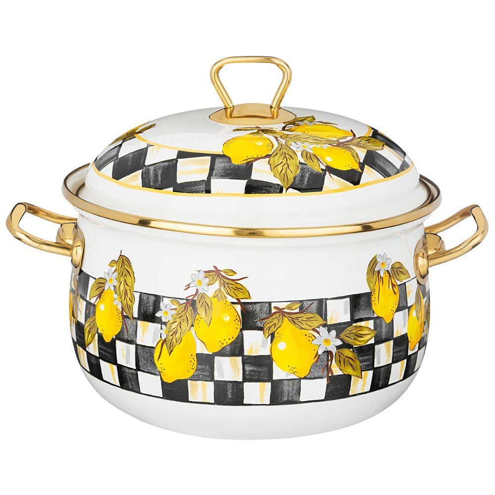 Кастрюля эмалированная с крышкой Vintage Flowers Объем: 6100 мл