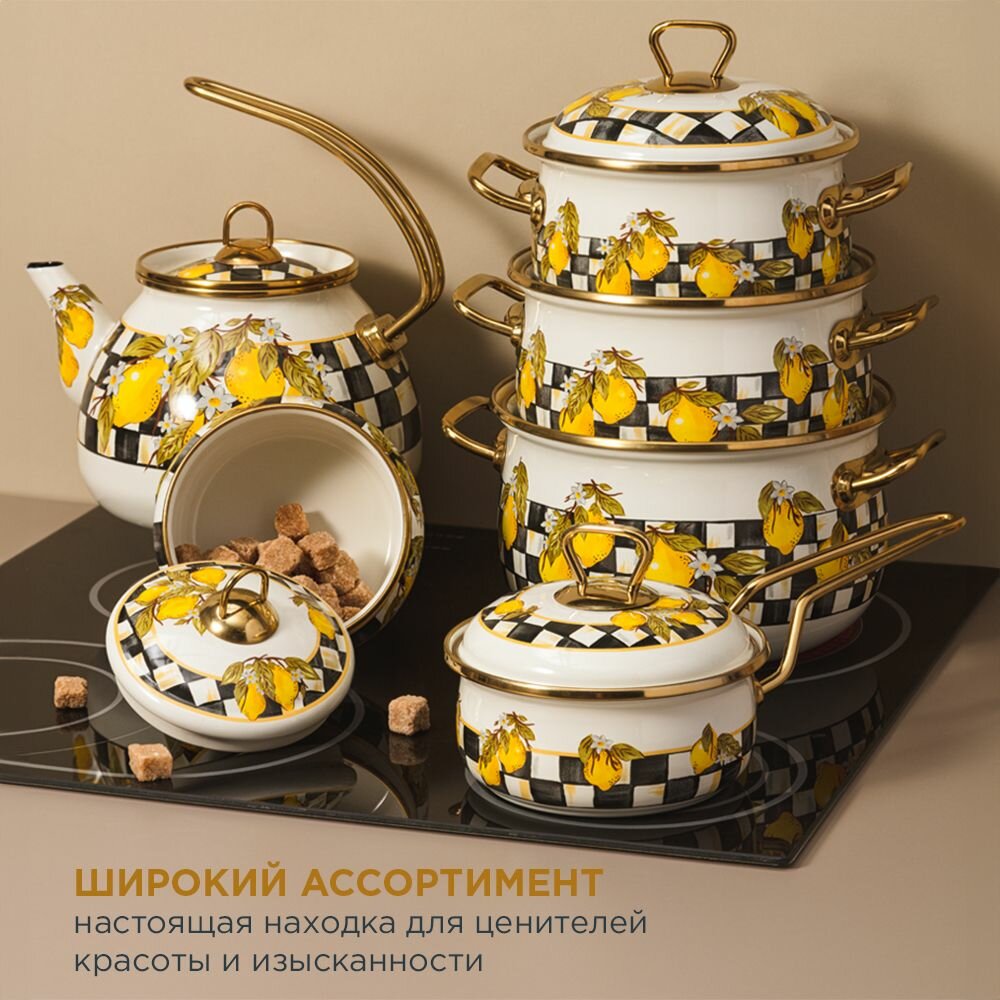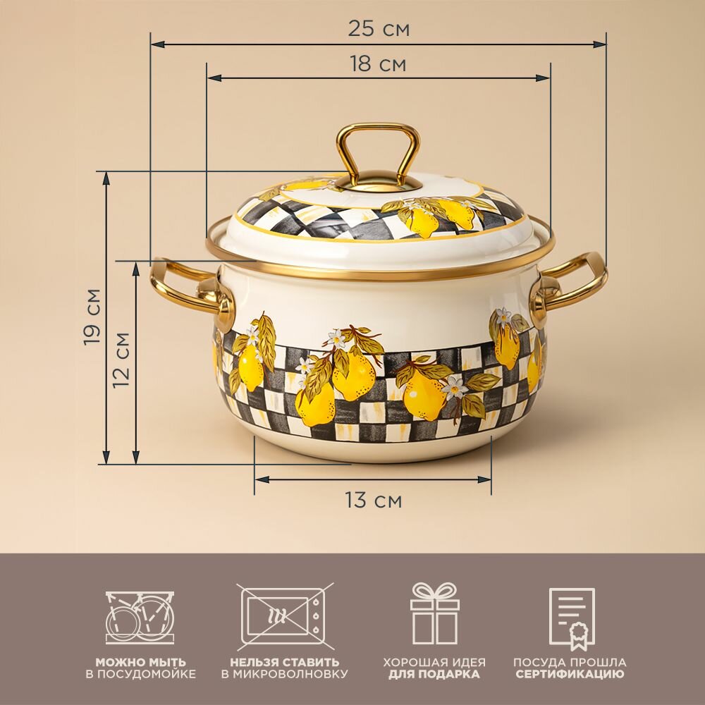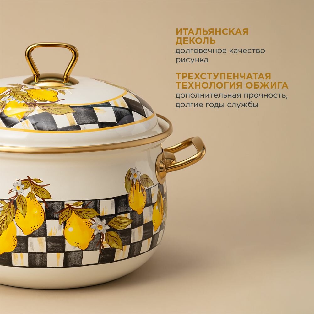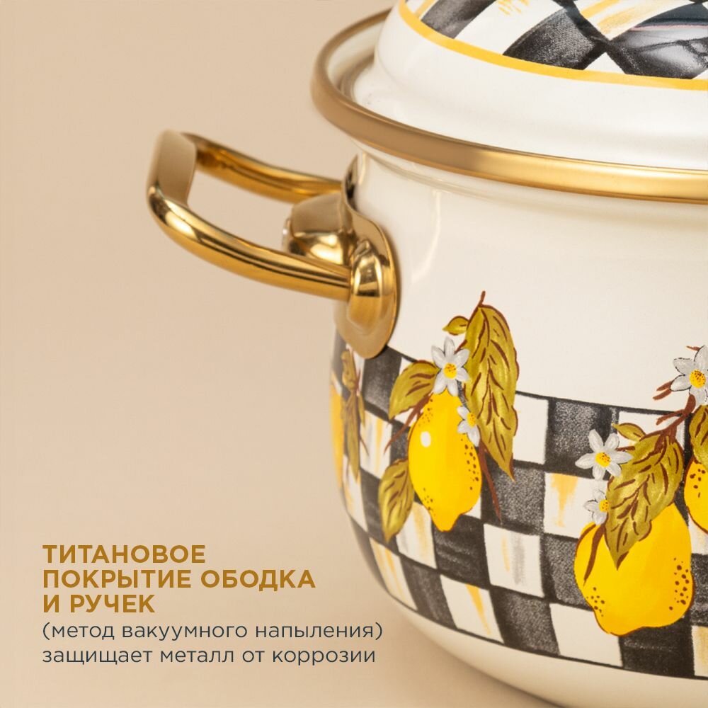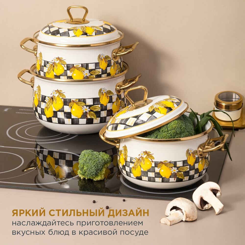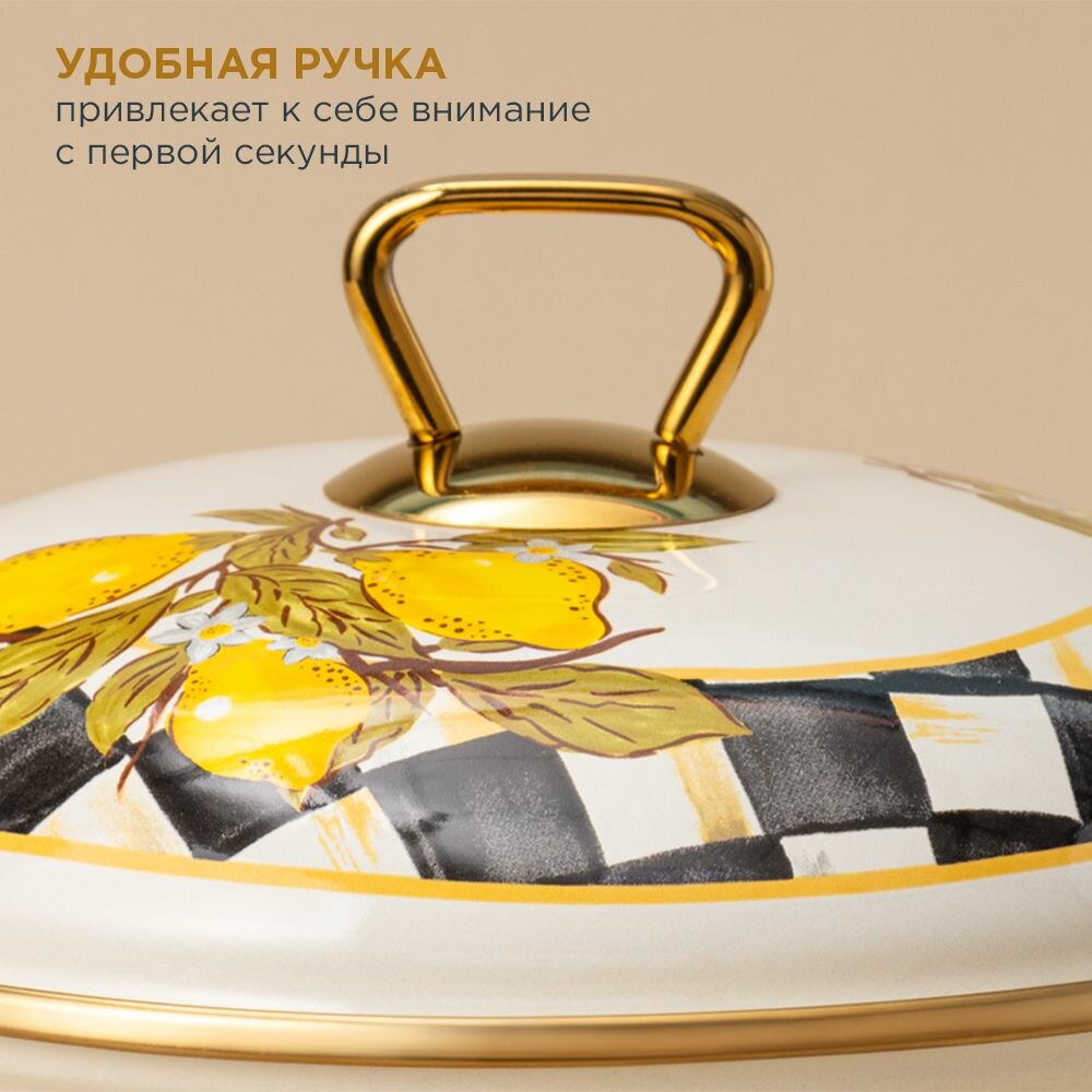 Кастрюля эмалированная AGNESS С крышкой, лимон 2,1Л, ДИА.16СМ подходит для индукцион.ПЛ