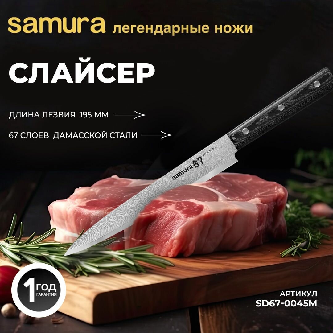 Нож кухонный для нарезки (слайсер) SAMURA 67 Damascus, SD67-0045M/K, дамасская сталь, 195 мм
