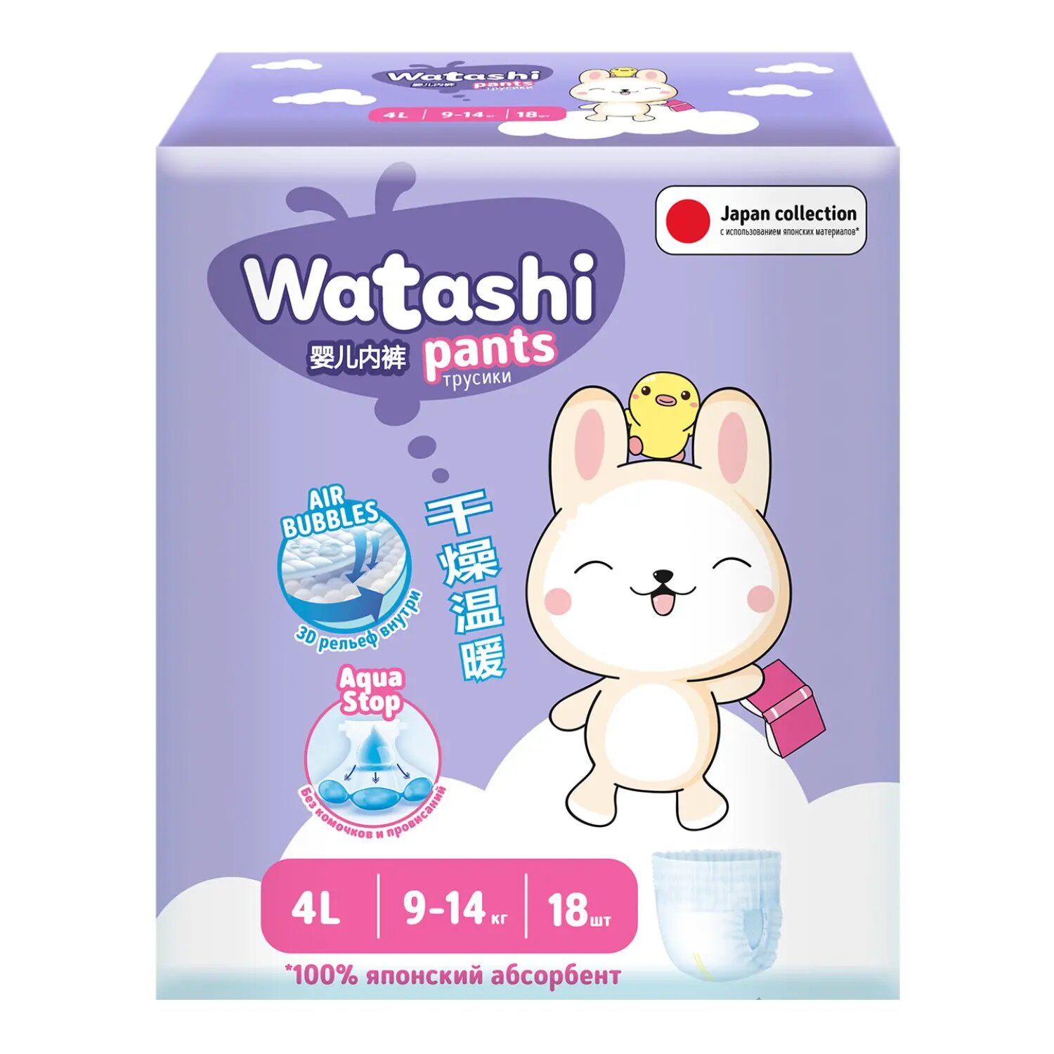 WATASHI Трусики-подгузники для детей, размер 4/L, 9-14 кг, 18 шт