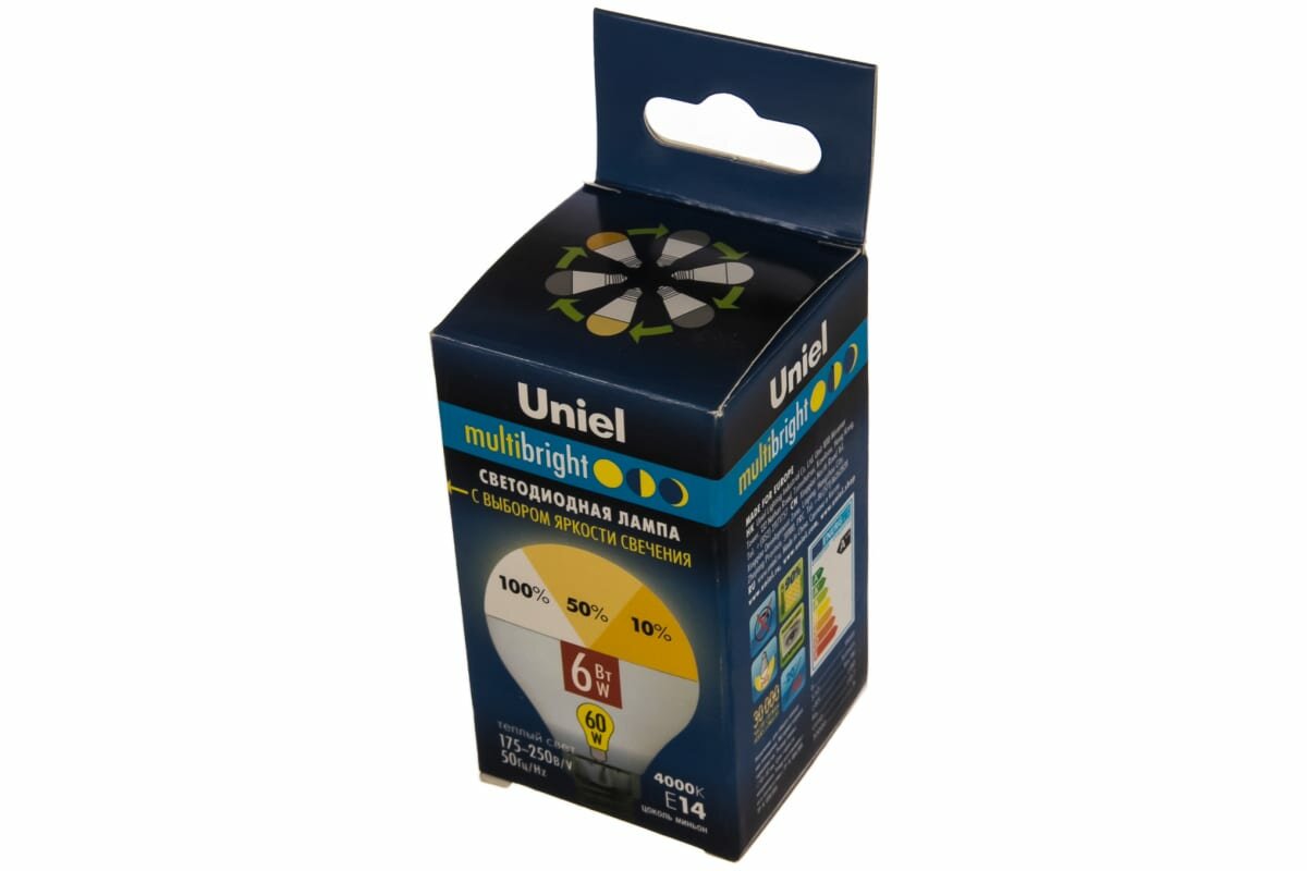 Лампа светодиодная Uniel UL-00000303, E14, G45, 6 Вт, 3000 К