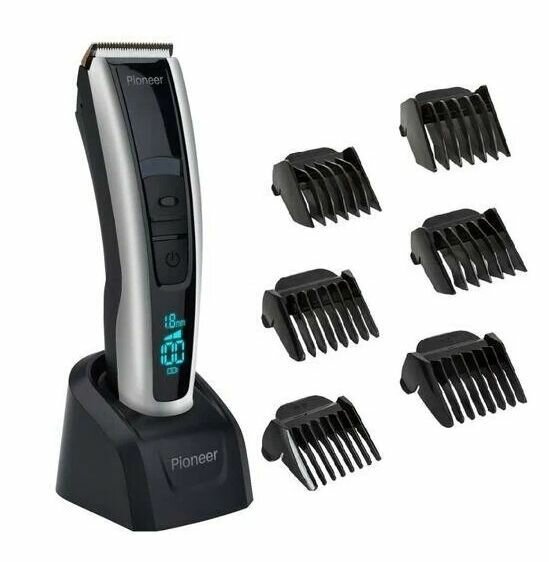 Машинка для стрижки Pioneer HC06R с LED дисплеем, стальным и керамическим движущимся лезвиями, 2 скорости, 7 насадок, насадка для филировки