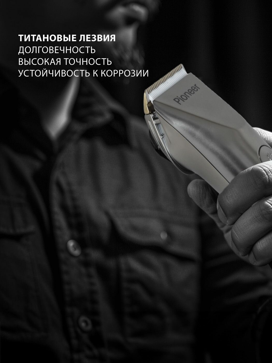 Беспроводная машинка для стрижки волос Pioneer man HC50RS с титановыми лезвиями