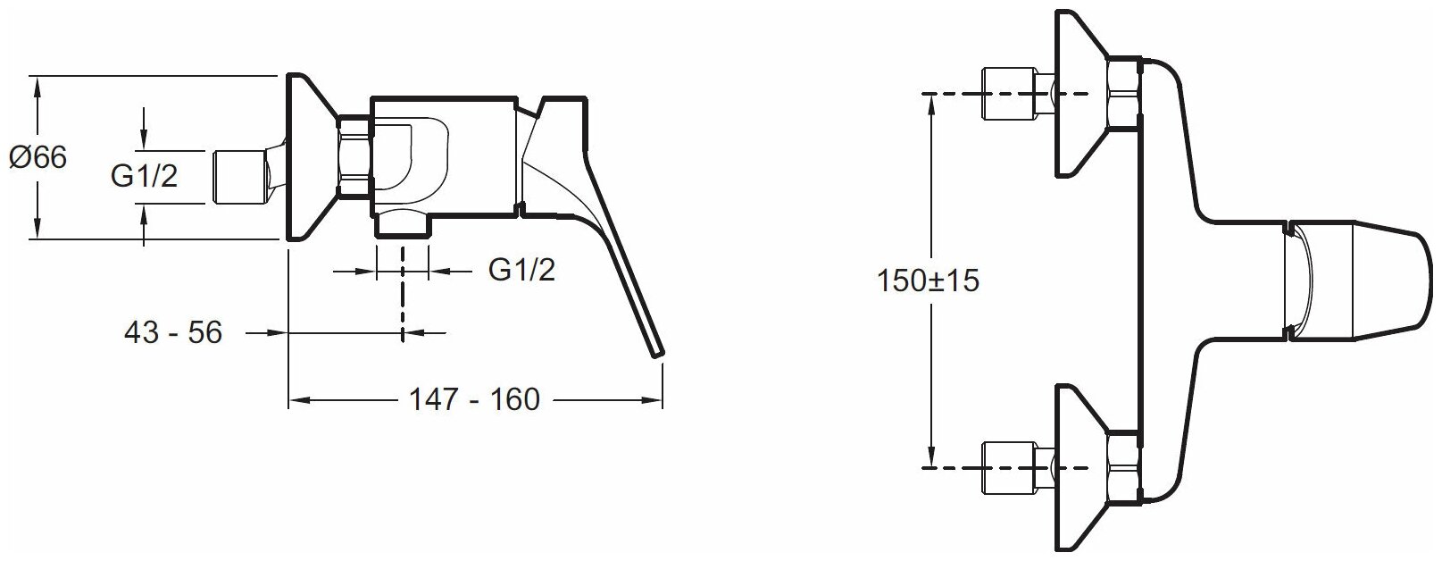 Смеситель Jacob Delafon BRIVE для душа, однорычажный, настенный, выход под шланг 1/2" E75765-CP