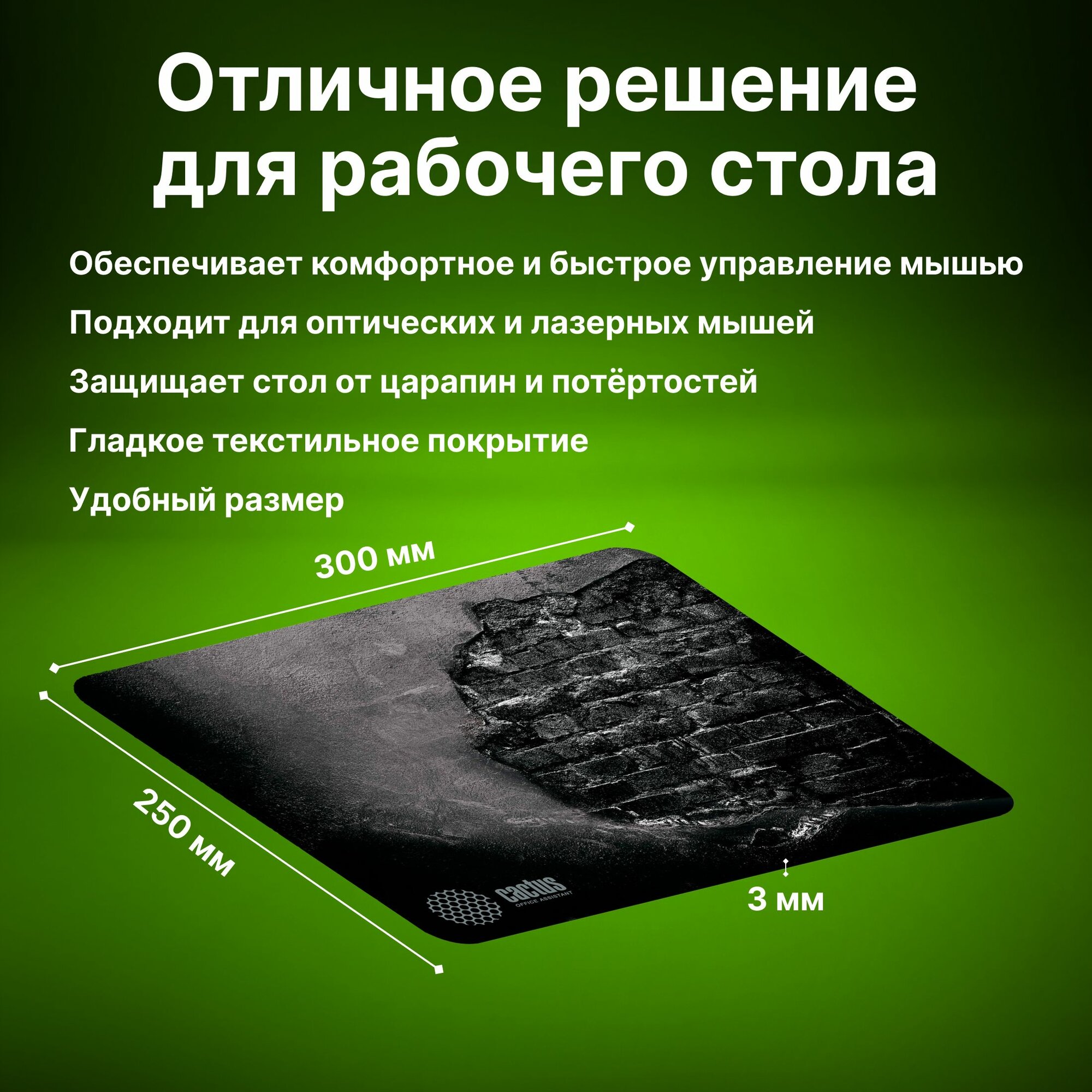 Коврик для мыши Cactus Brick Wall (M) черный, ткань, 300х250х3мм [cs-mp-dwm]