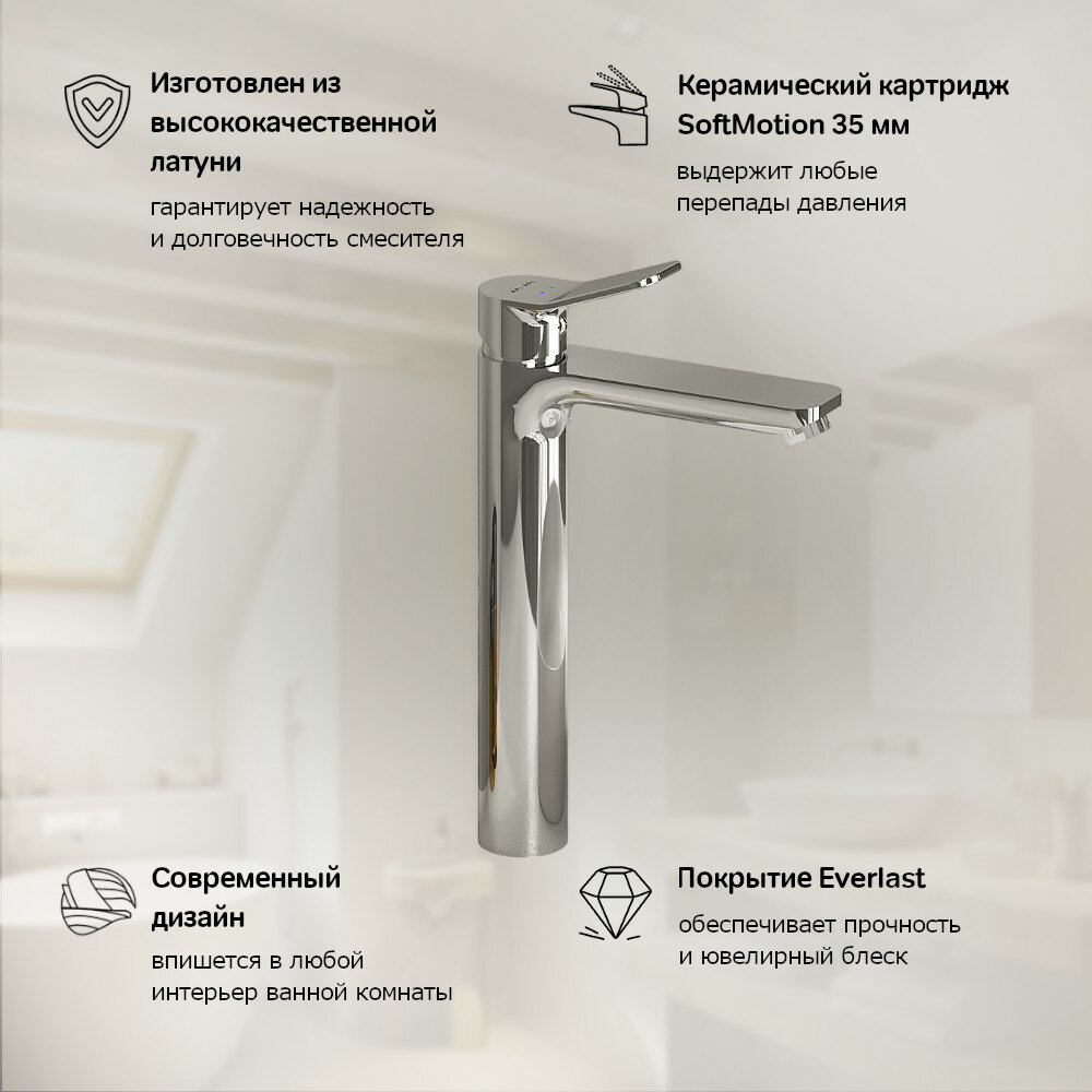 Купить Смеситель для накладной раковины AM.PM Brava, высокий излив, латунь, хром