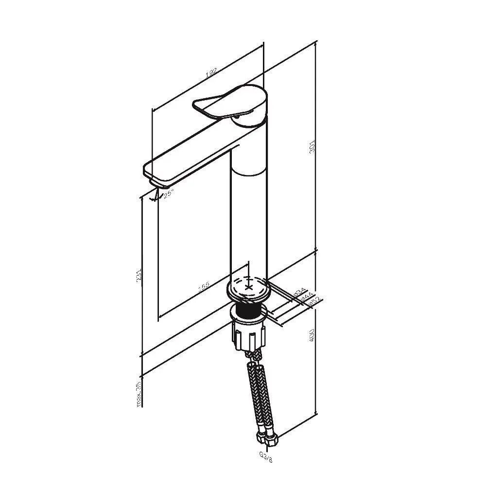 Смеситель для раковины AM.PM Brava хром, с длинным металлическим донным клапаном Damixa, керамический картридж