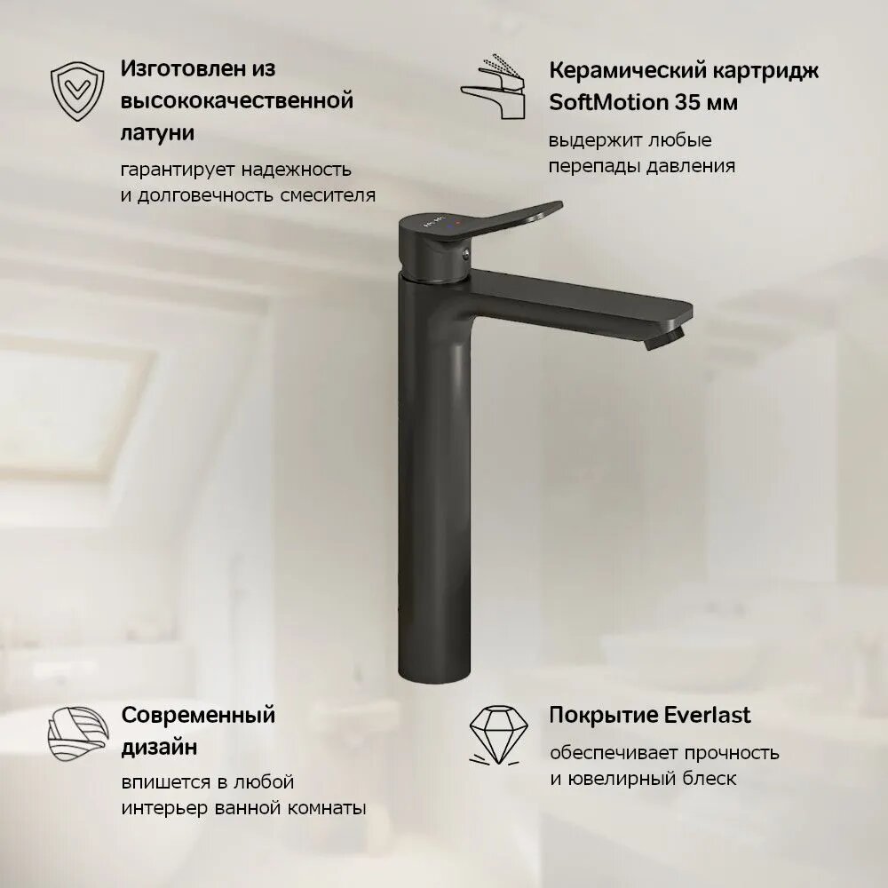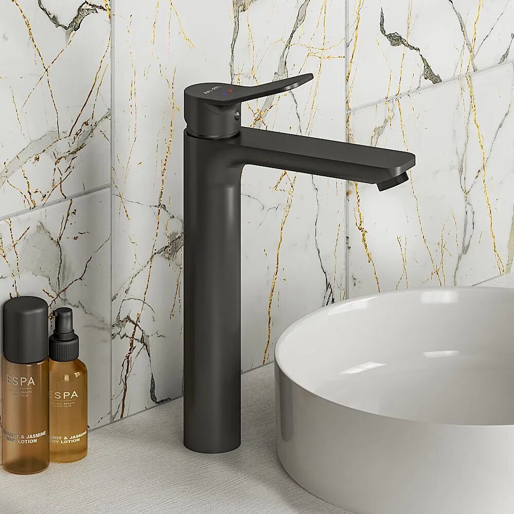 Купить Смеситель для накладной раковины AM.PM Brava, высокий излив 231, латунь, черный