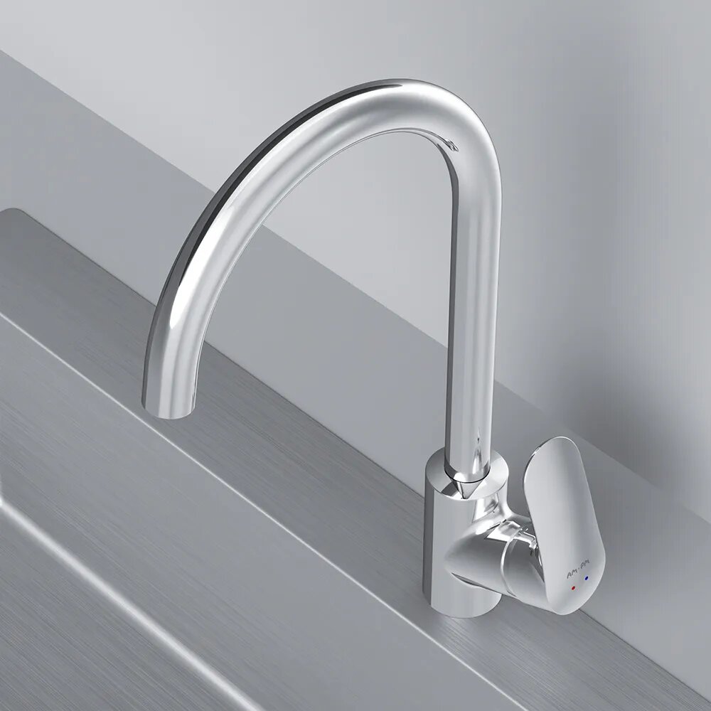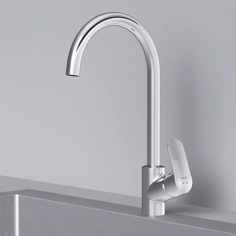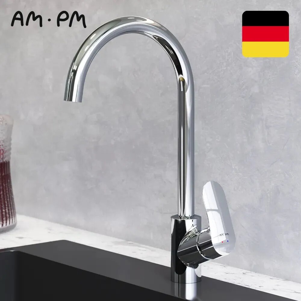 Смеситель для кухни AM.PM Jump, краны смесители для кухни, кран на мойку для кухни, для раковины, высокий поворотный излив 270 мм, стабилизирующий картридж, Германия, высококачественная латунь, Гарантия 10 лет