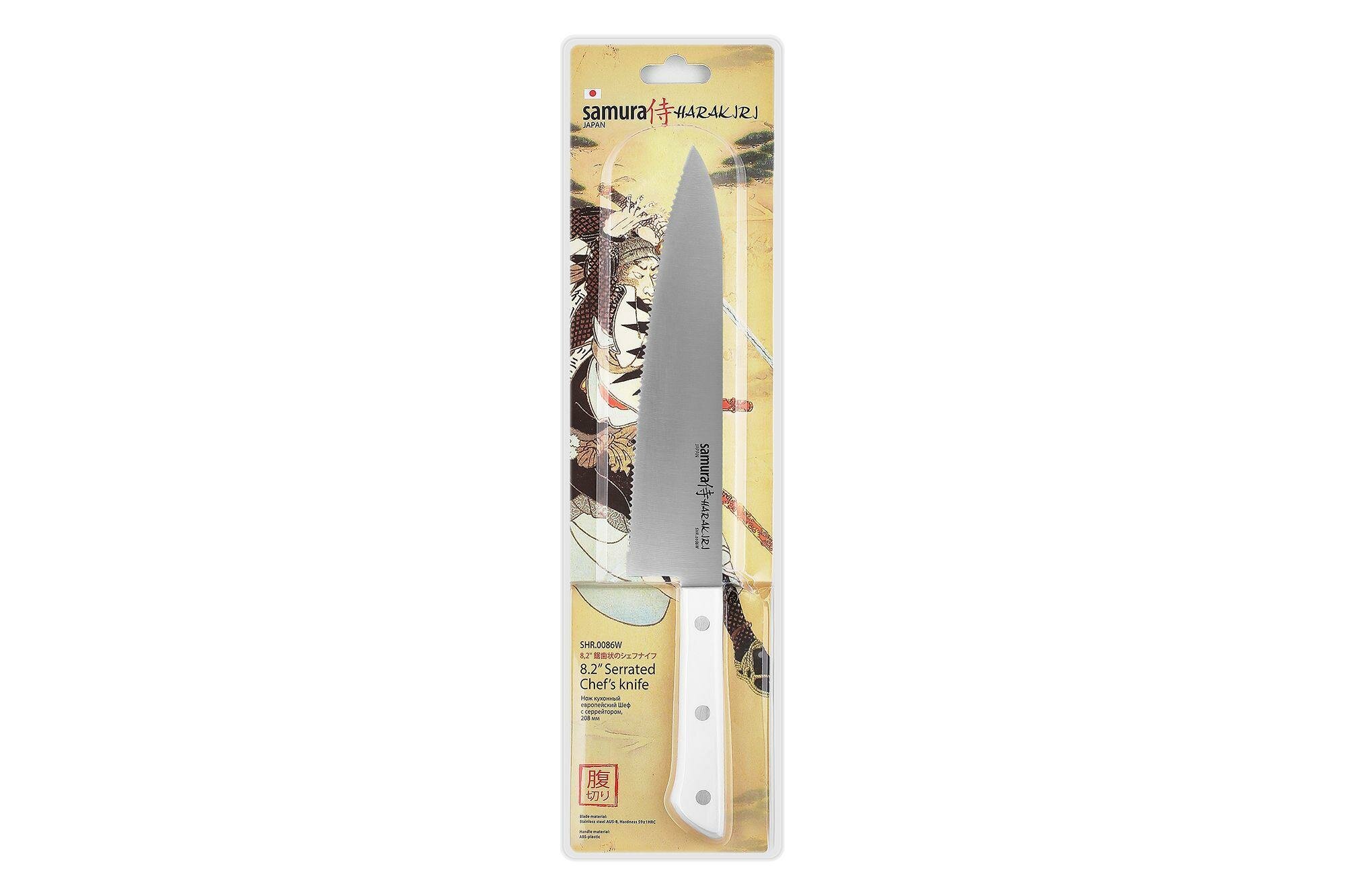 Нож кухонный Шеф серрейтор Samura HARAKIRI, 208 мм, белый акрил (SHR-0086AW/K)