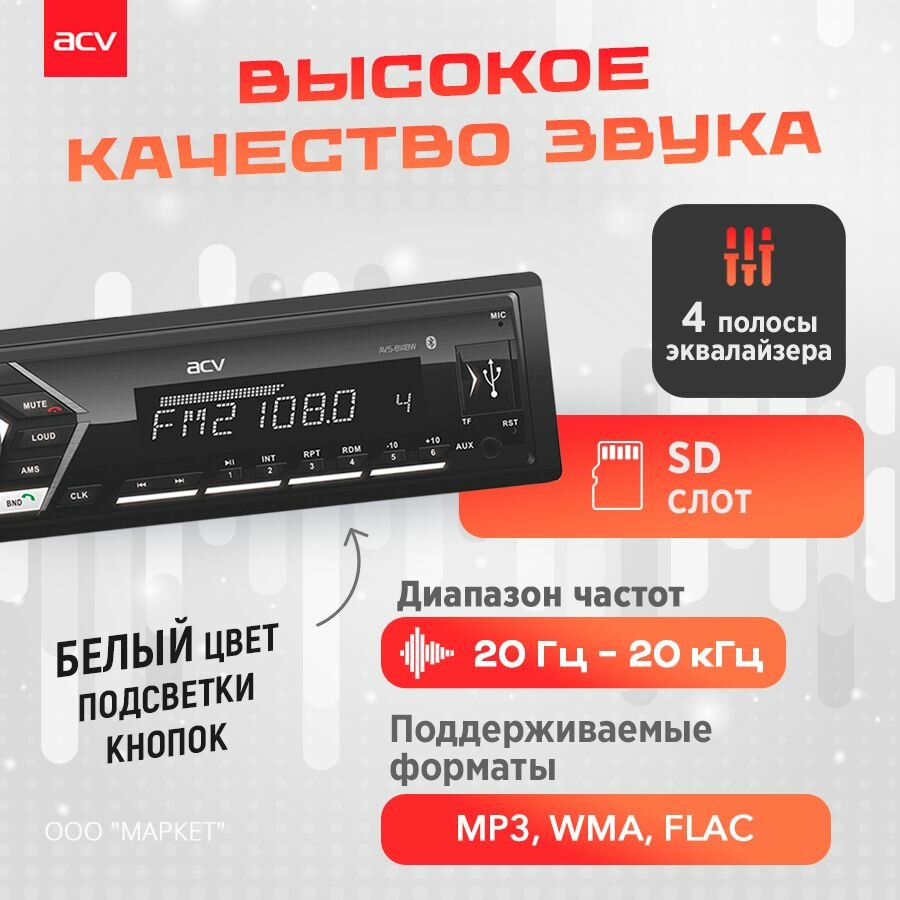 автомагнитола acv fm/mp3/usb/sd/bluetooth белая подсветка несъемная панель avs-814bw