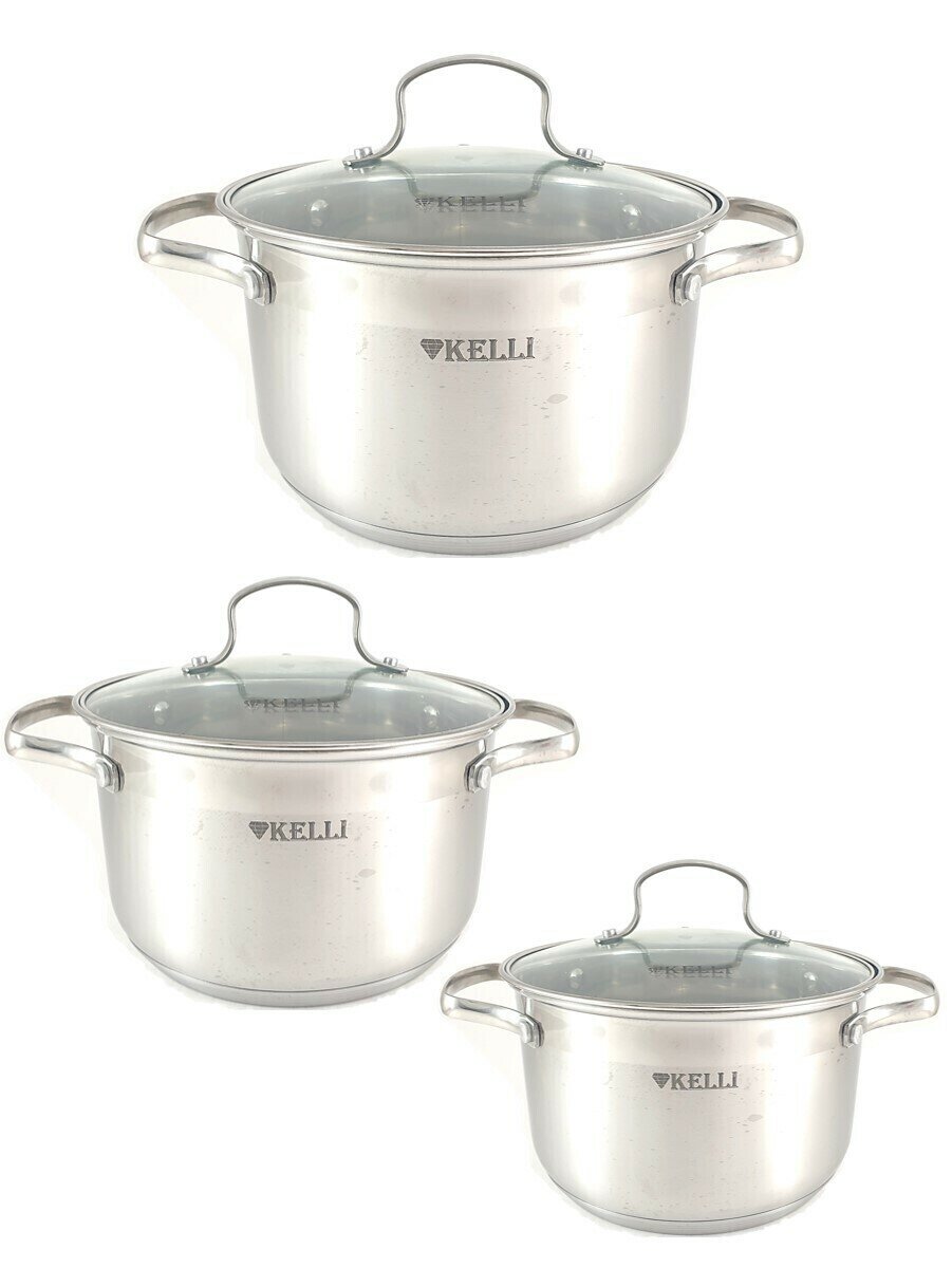 KL-4230 Набор посуды 3 кастрюли из нерж,стали Kelli