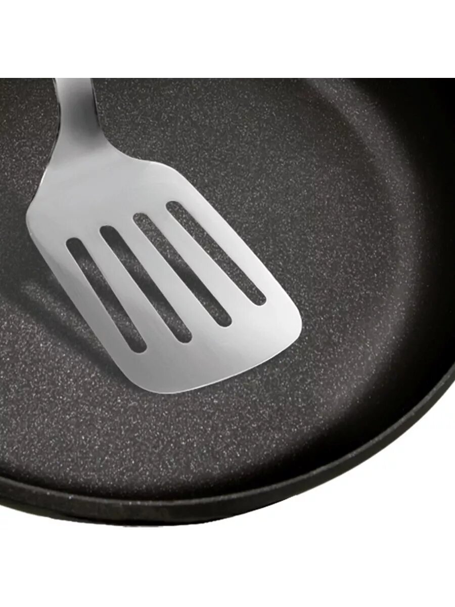 | Отзыв: | Бралась с расчетом что будем долго пользоваться, но после первой жарки картошки с использованием пластиковой лопатки вся поверхность покрылась микроцарапинами. За аналогичную цену сковорода другой известной фирмы служит уже год без намека на царапинку.