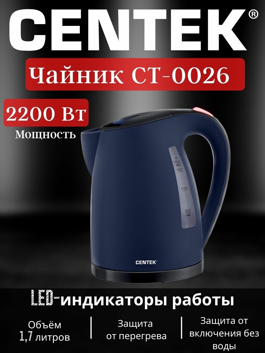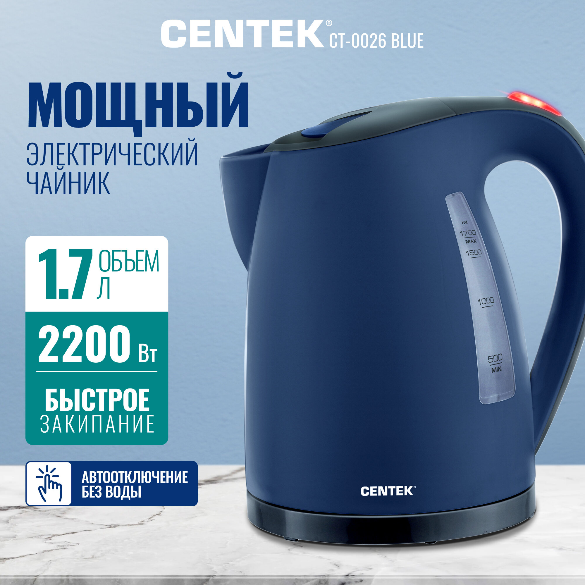 Centek Чайник электрический CT-0026, 2200 Вт, 1,7 л, синий