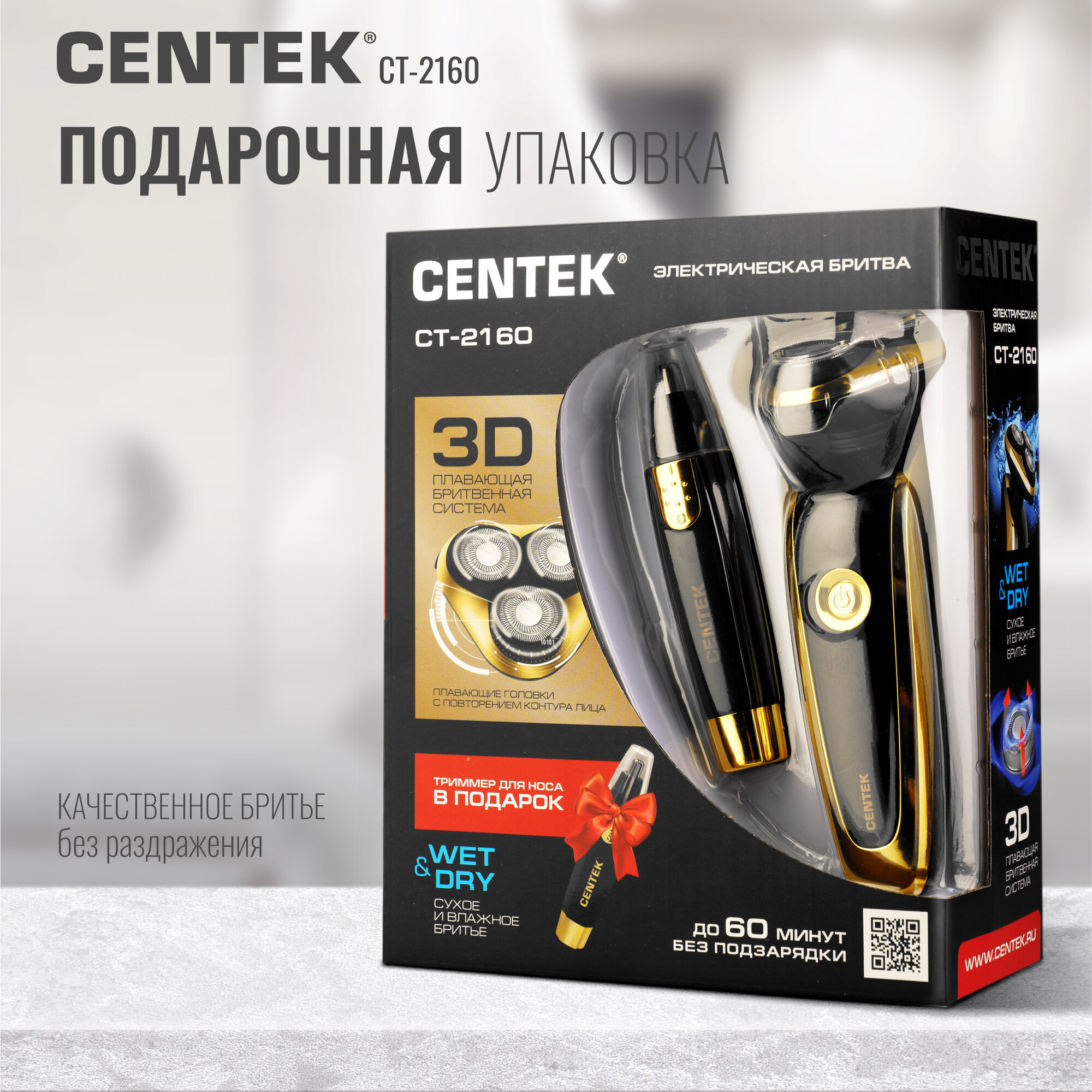 Centek Бритва (золото/черный) + Триммер для носа в 3 головки, 3D, 60мин работы CT-2160 .
