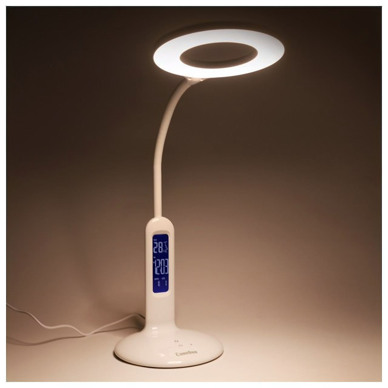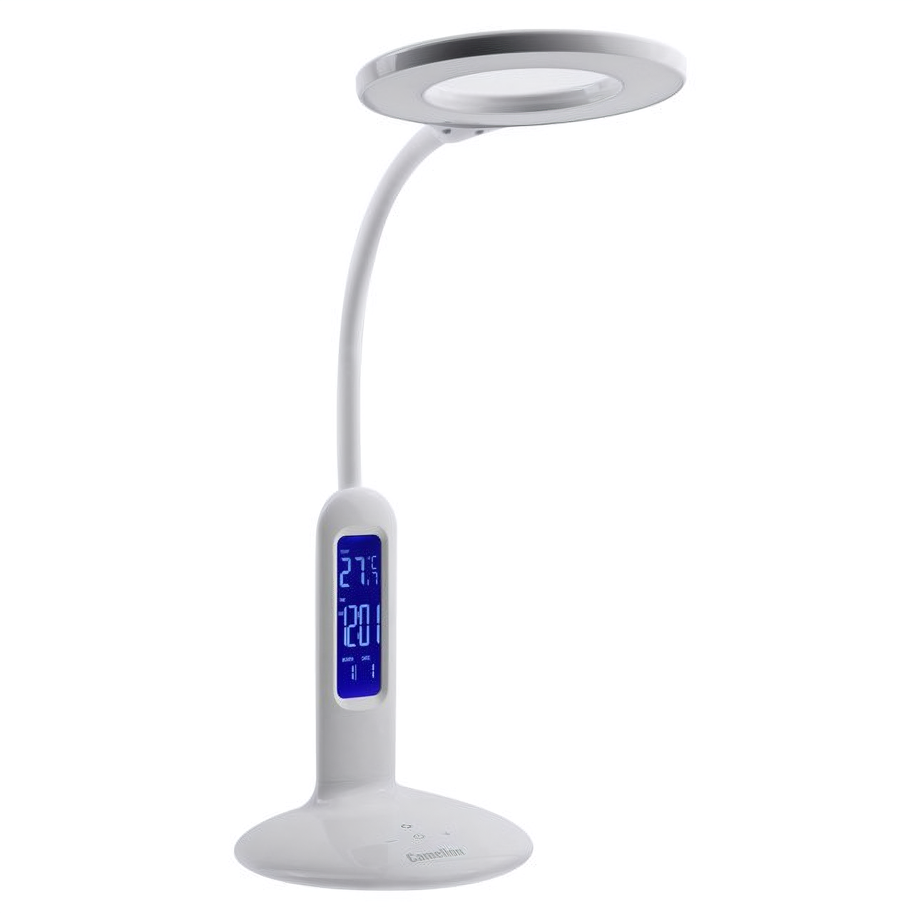 Camelion Настольные светильники KD-823 C01 бел.LED Свет-к наст.,8 Вт,230В, 500лм,сенс, термометр, рег.ярк и цвет.темп.