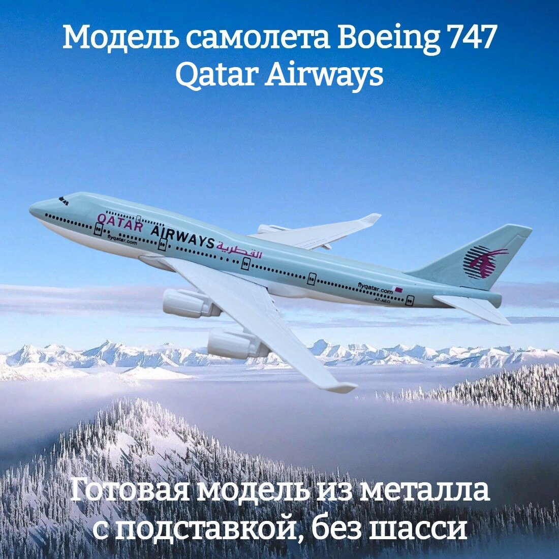 Купить Модель самолета Boeing 747 Qatar Airways длина 15 см (без шасси)