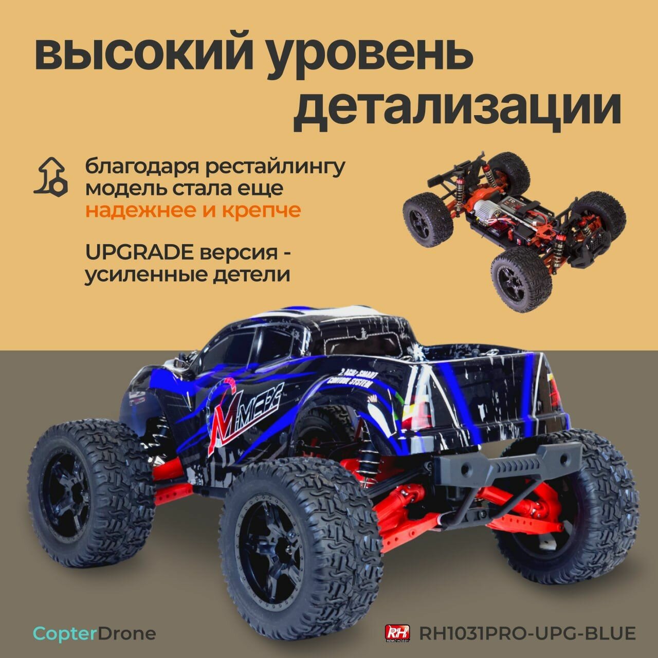 Радиоуправляемый монстр Remo Hobby MMAX PRO UPGRADE 4WD RTR масштаб 1:10 2.4G - RH1031PRO-UPG-BLUE