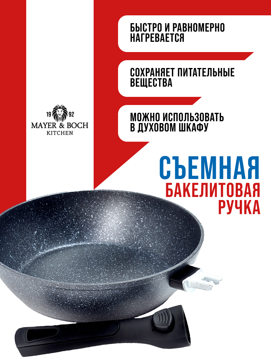 Купить Сковорода MAYER&BOCH 26см, мраморное антипригарное покрытие, съемная ручка 29740