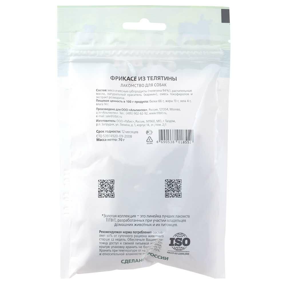 Титбит 8552 Золотая коллекция Фрикасе из телятины для собак 70гр интересное:
