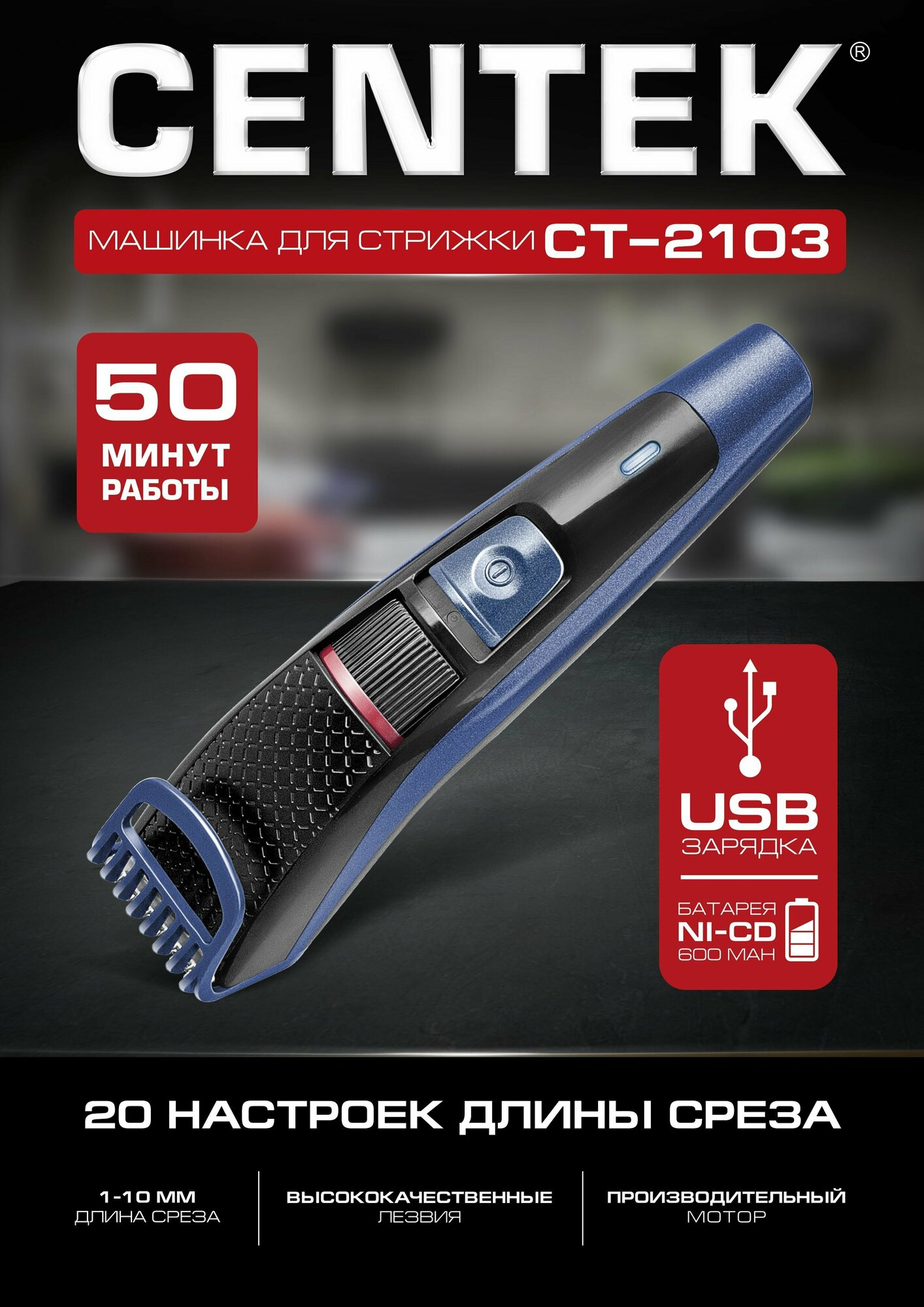 Машинка для стрижки CENTEK CT-2104 (черн/синий)