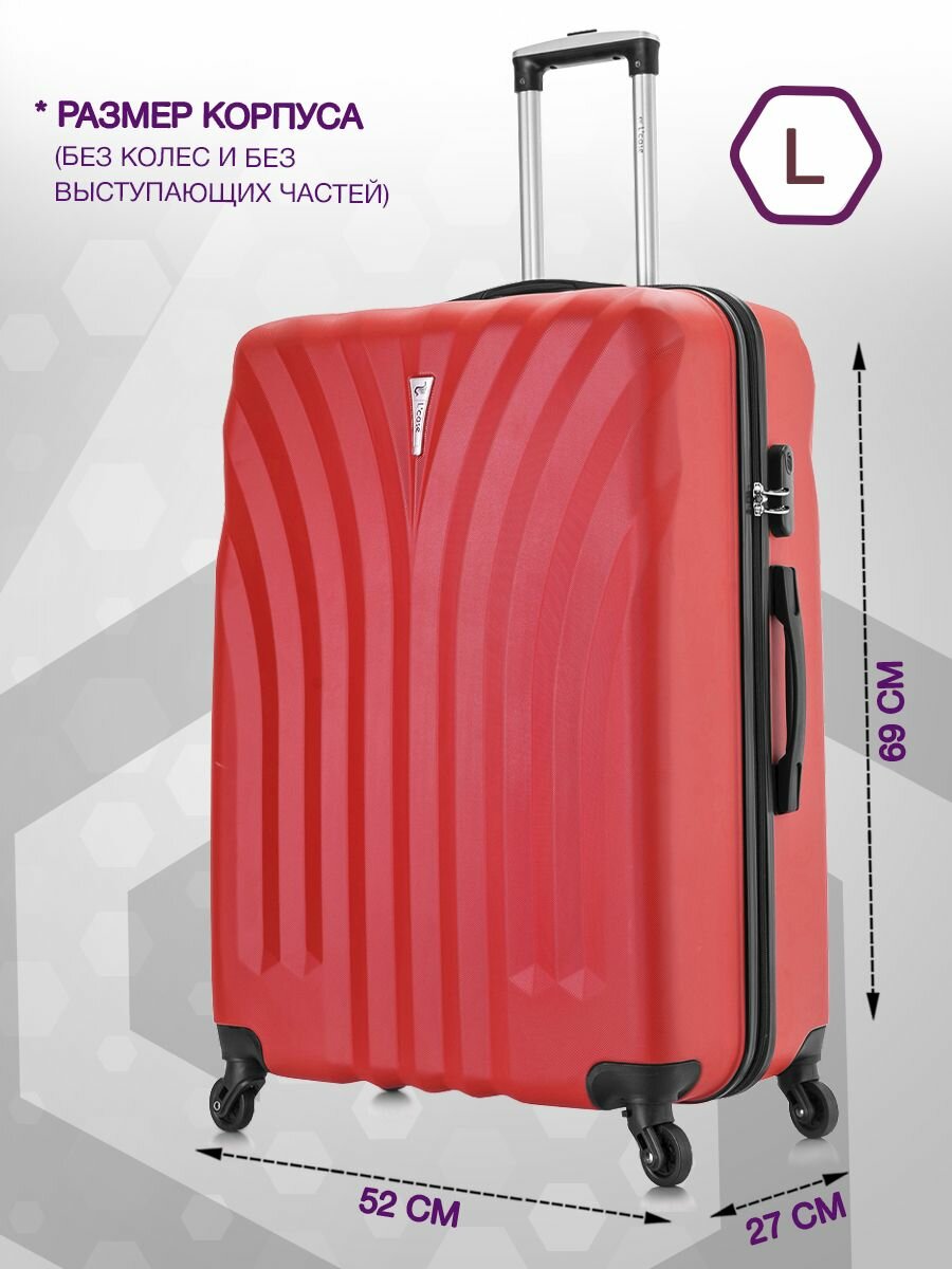 Чемодан на колесах L case Phatthaya. Большой L, АВС пластик. Красный дорожный чемодан на колесиках для путешествий и поездок.