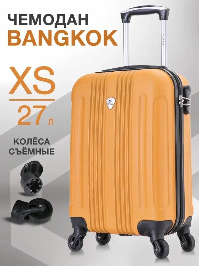 Чемодан на съемных колесах маленький XS пластиковый Bangkok, дорожный, ударопрочный, кодовый замок, ручная кладь, 50 см, 27 л