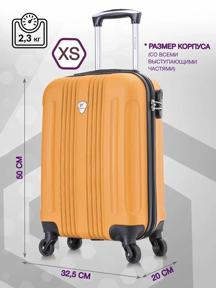 Чемодан L'Case Bangkok размер S (ударопрочный ABS-пластик, съемные колеса, телескопическая ручка, кодовый замок-молния) желтый