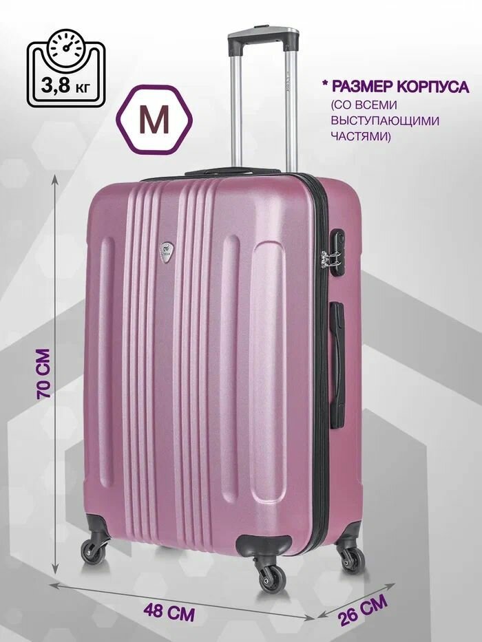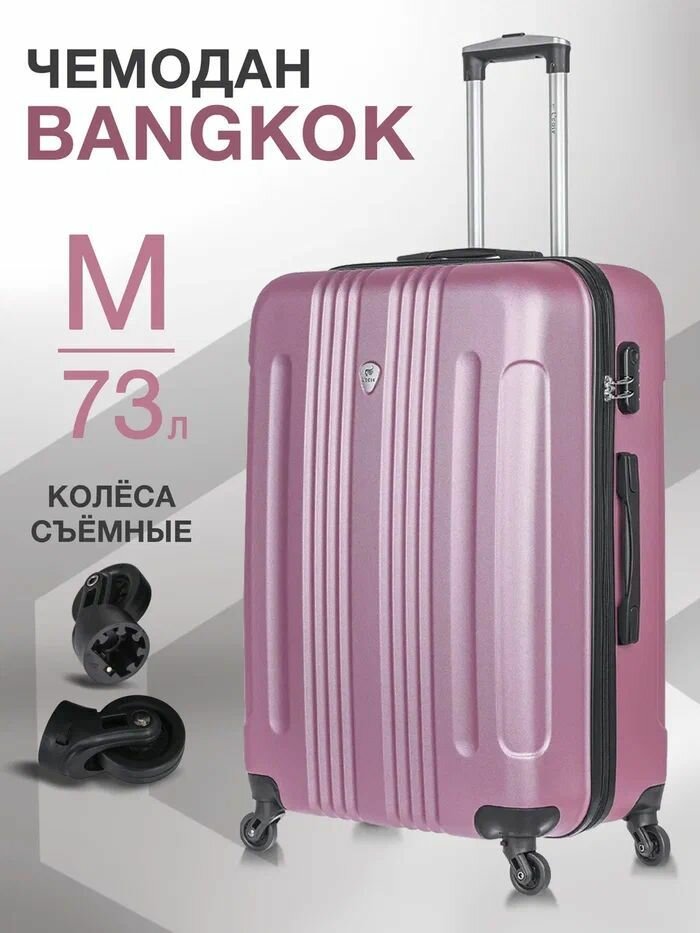 Чемодан на колесах средний S пластиковый Bangkok дорожный, ударопрочный, съемные колеса, кодовый замок, 58 см, 46 л