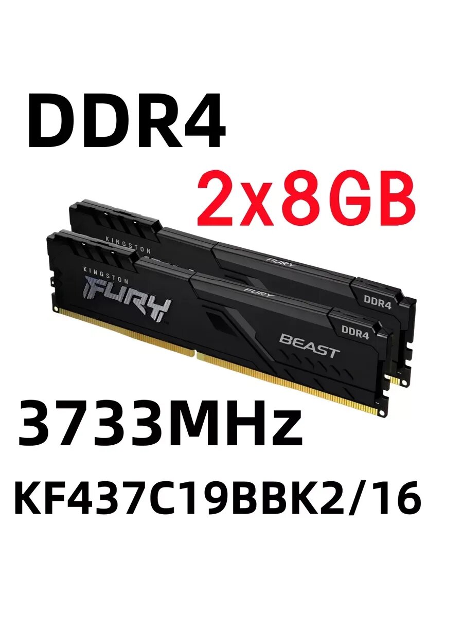 Оперативная память Kingston FURY Beast 16 ГБ (8 ГБ x 2 шт.) DDR4 3733 МГц DIMM CL19 KF437C19BBK2/16
