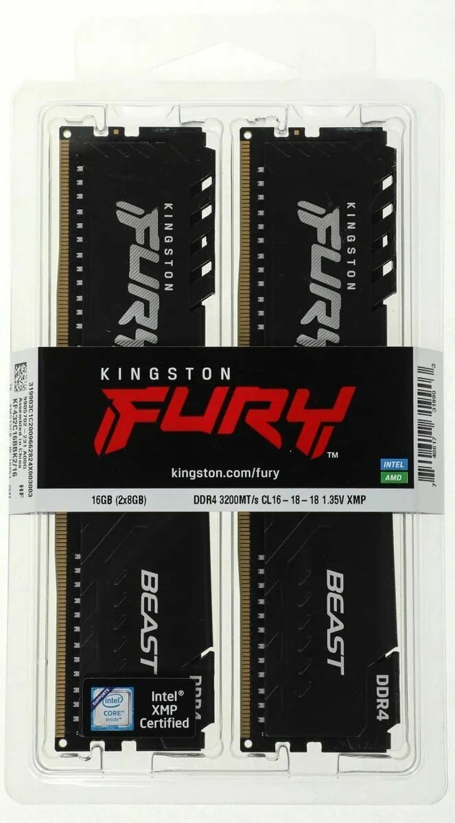 Модуль памяти Kingston Fury Beast Black KF432C16BBK2/16 DDR4 - 2x 8ГБ 3200, DIMM, Ret
