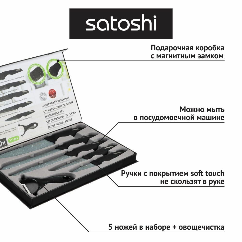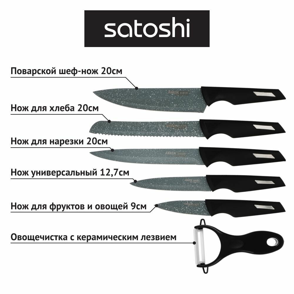 Набор Satoshi Kitchenware Arren 803-282, 5 ножей и овощечистка