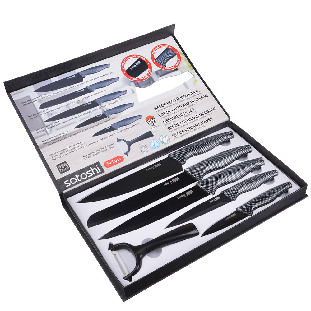 Набор Satoshi Kitchenware Carbon 803-075, 5 ножей и овощечистка