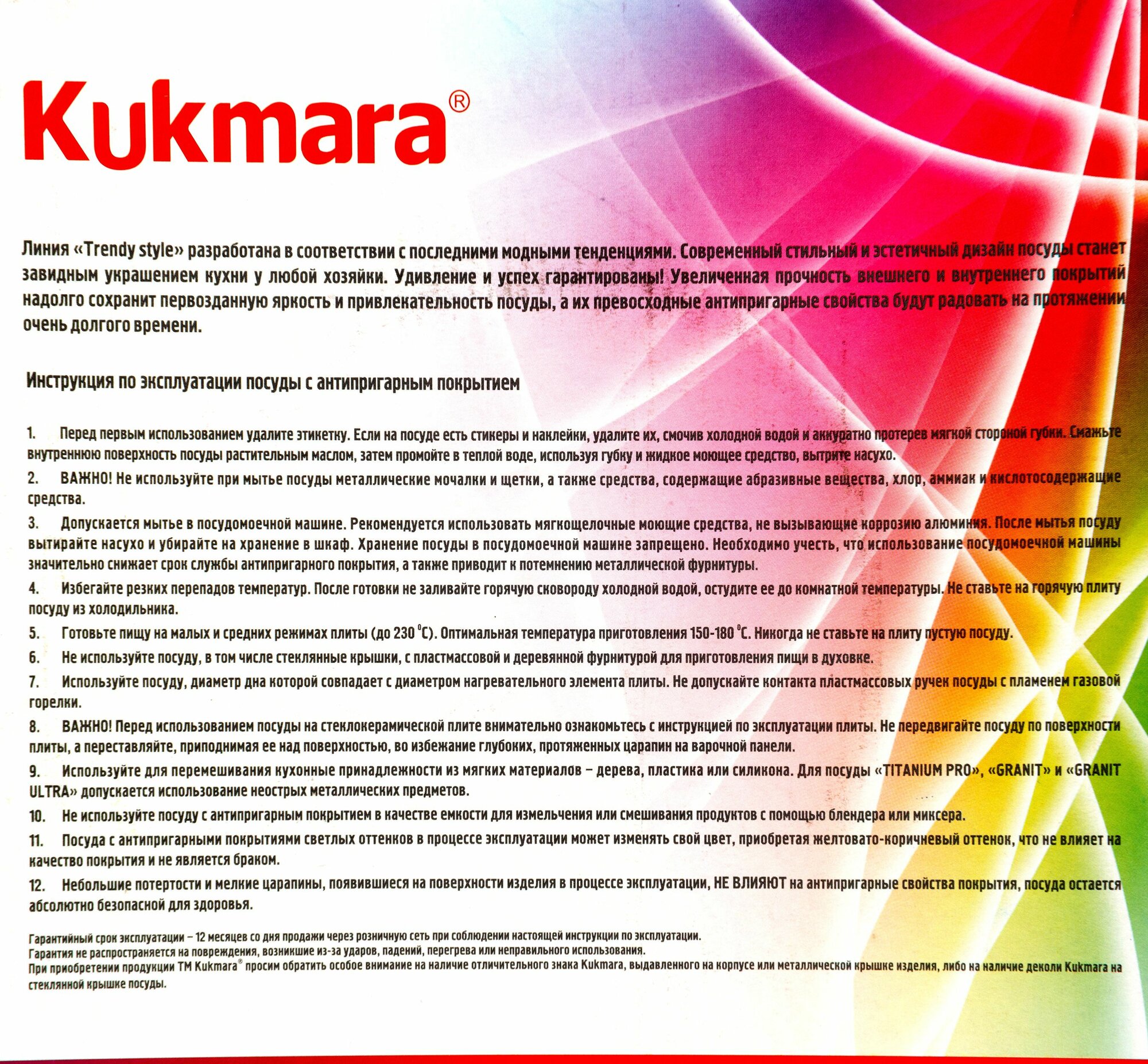 | Отзыв: | Отличная, как и вся посудa Kukmara. Приготовление пищи в ней - сплошное удовольствие. |
