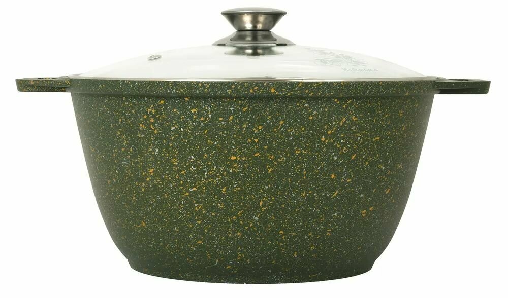 Кастрюля-жаровня "Kukmara" 4л. со стеклянной крышкой, с антипригарным покрытием, "Trendy style" (Malachite)