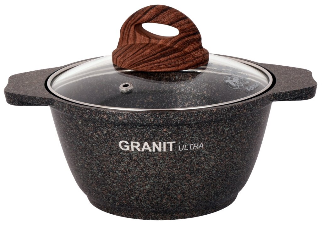Кастрюля Granit ultra, 1л, стеклянная крышка, антипригарное покрытие, цвет коричневый KUKMARA 461148 .